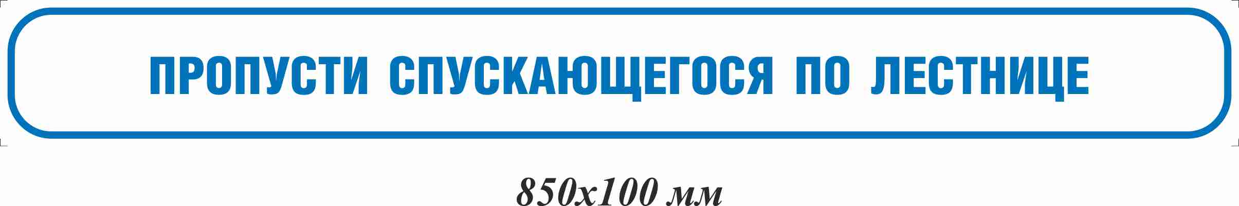 Наклейка информационная на ступени Пропусти спускающегося по лестнице 850х100 мм, материал пленка ПВХ самоклеящаяся, форма прямоугольная края закругленные, цвет белый/синий/Арт. IT-850x100-PS1
