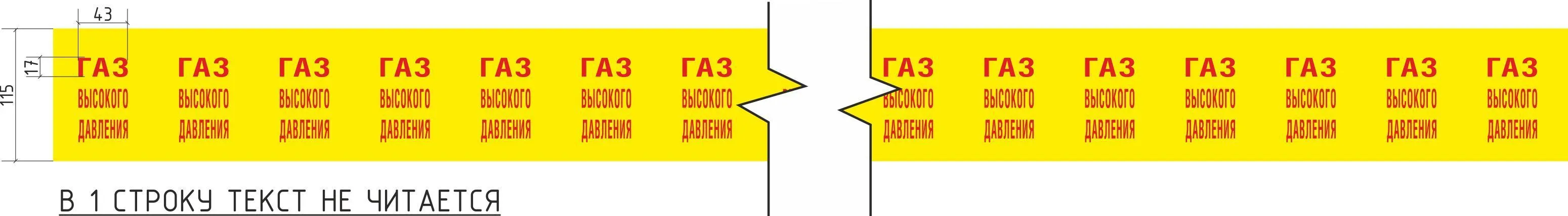 Лента маркировочная Газ высокого давления, 115 мм х 20 м, 92 мм, цвет фона желтый