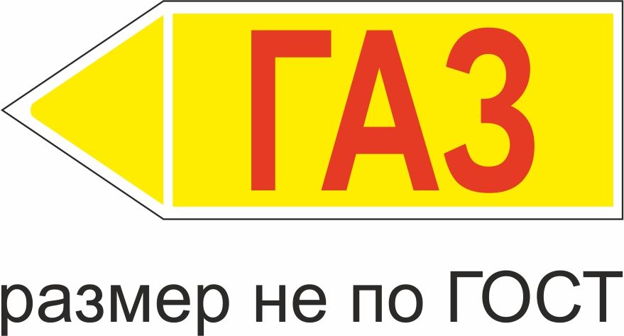 Маркер самоклеящийся Газ низкого давление 148х420 мм, фон желтый, буквы красные, направо