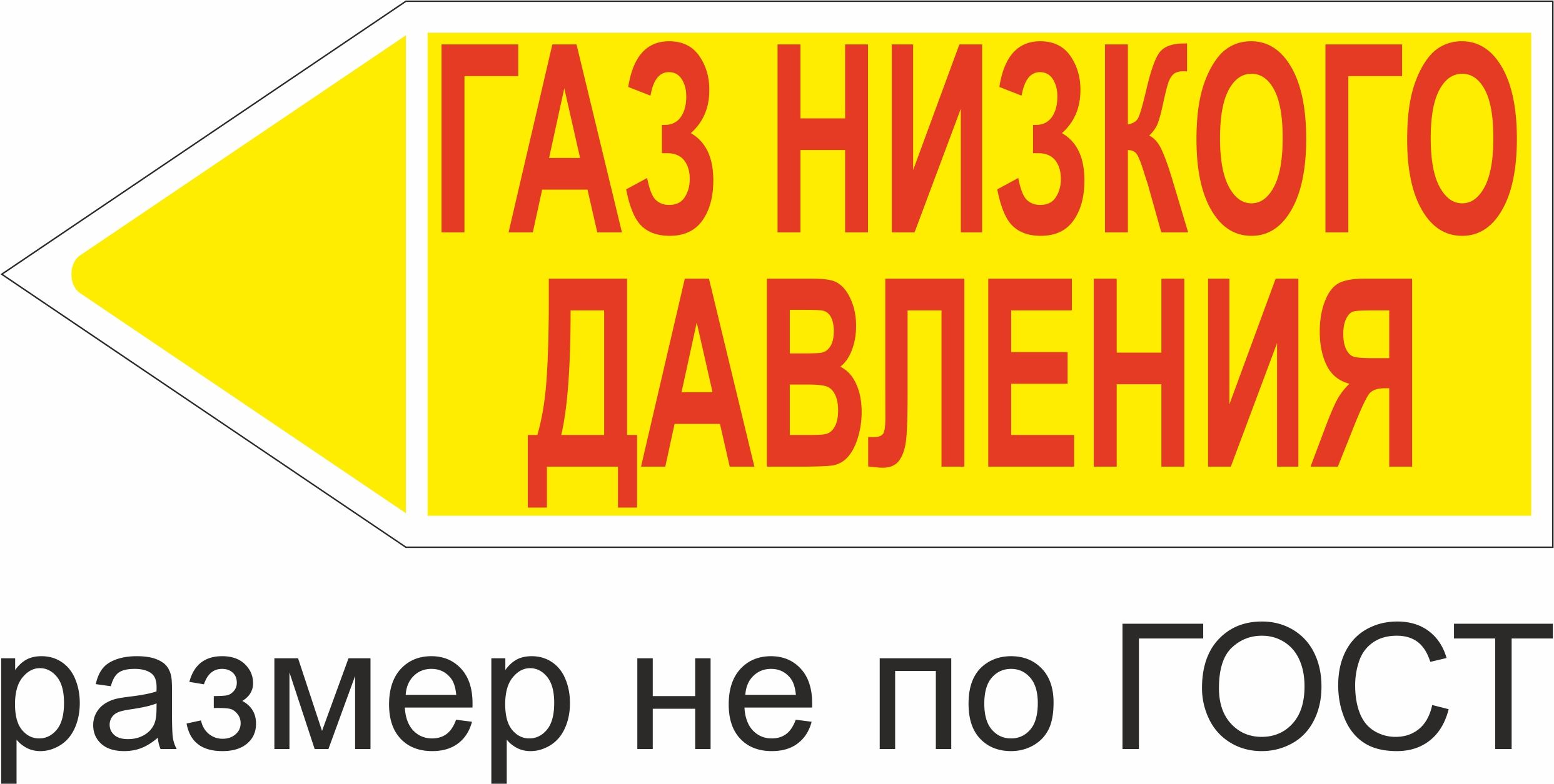 Маркер самоклеящийся Газ высокое давление 105х297 мм, фон желтый, буквы красные, налево