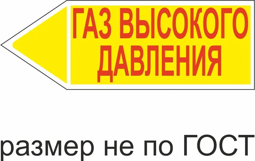 Маркер самоклеящийся Газ низкого давление 148х420 мм, фон желтый, буквы красные, направо