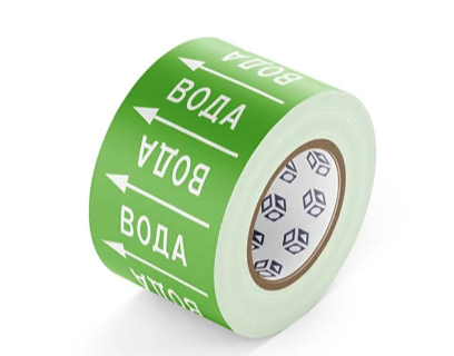 Маркировочная лента для трубопроводов с наименованием и стрелками ВОДА