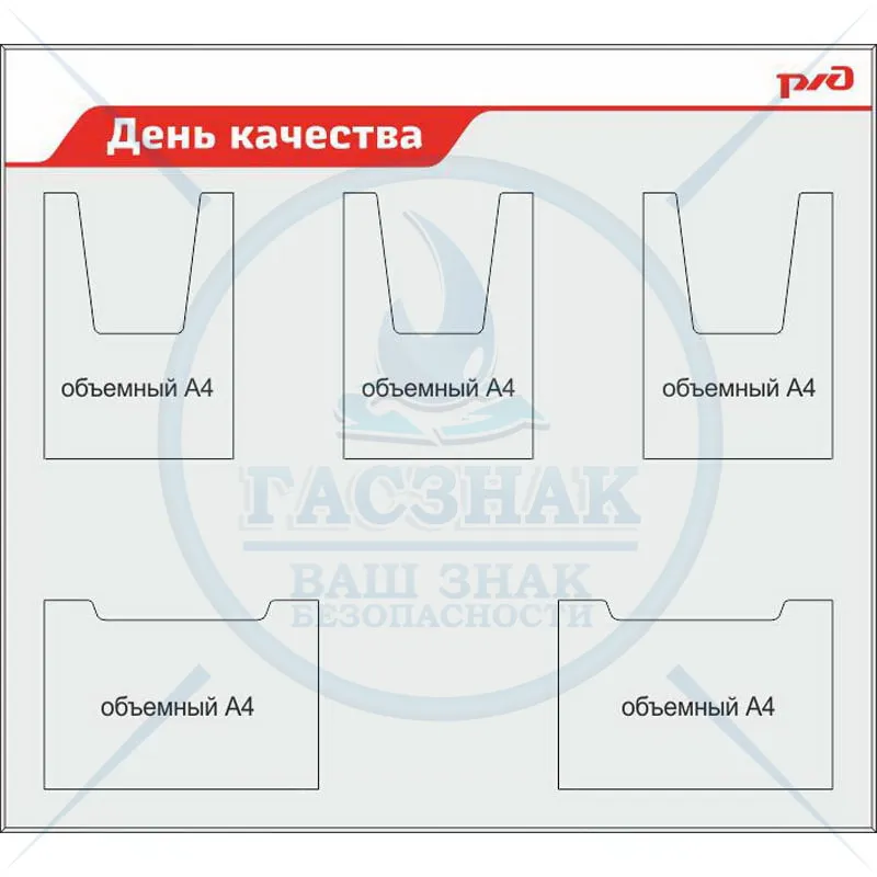 Стенд по охране труда для ОАО РЖД Охраны труда, металлокомпозит, 3 мм с профилем NIELSEN, с 6-ю карманами и перекидной системмой А4 на 10 рам.(1400х1200)