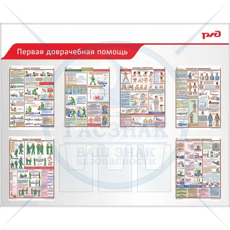 Стенд Рабочее место газосварщика для ОАО РЖД, 5 плакатов А3, 1 объемный карман А4 (1100х1200; Пластик ПВХ 4 мм; Алюминиевый профиль)
