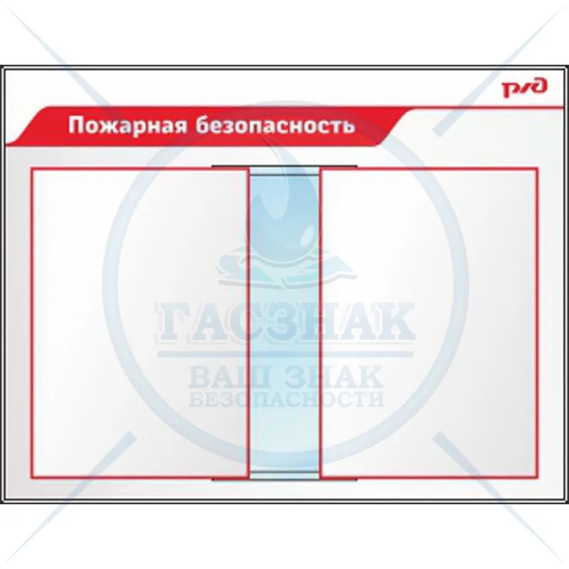 Стенды по охране труда для ОАО РЖД Вводный инструктаж по ОТ, профиль Nielsen, 3 плаката А2, 3 плоских кармана А4, 2 объёмных кармана (Пластик ПВХ 4 мм, алюминиевый профиль; 1400х1200)