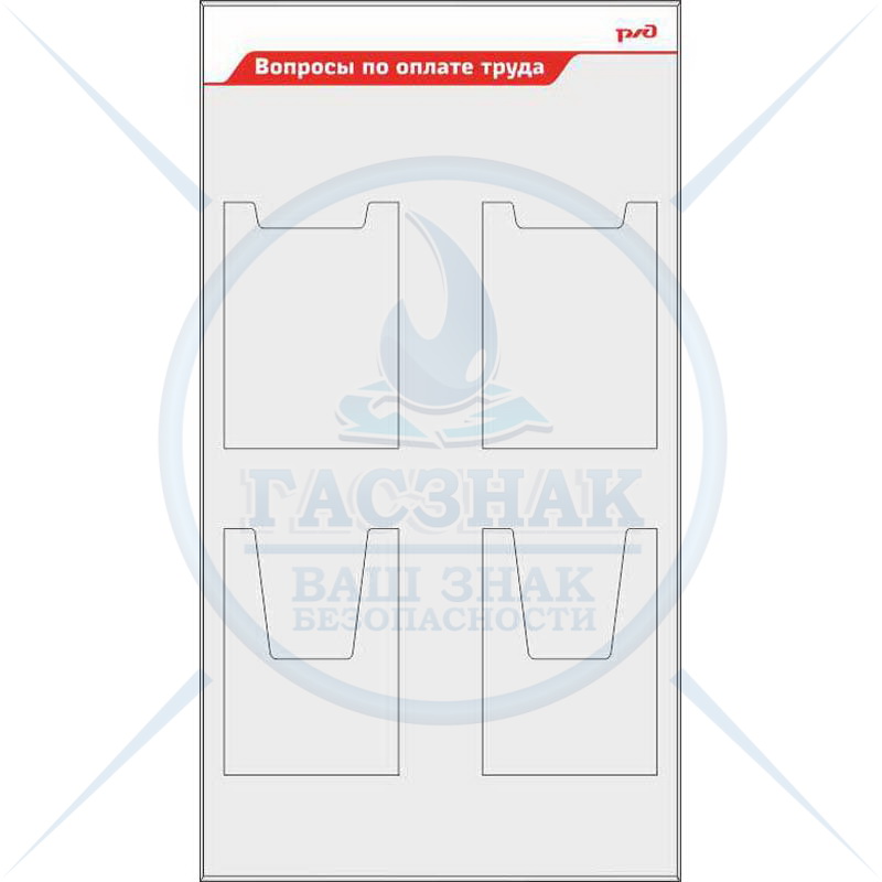Стенд охрана труда РЖД, 4 объемных кармана А4 (600х1100; Пластик ПВХ 4 мм, алюминиевый профиль; )
