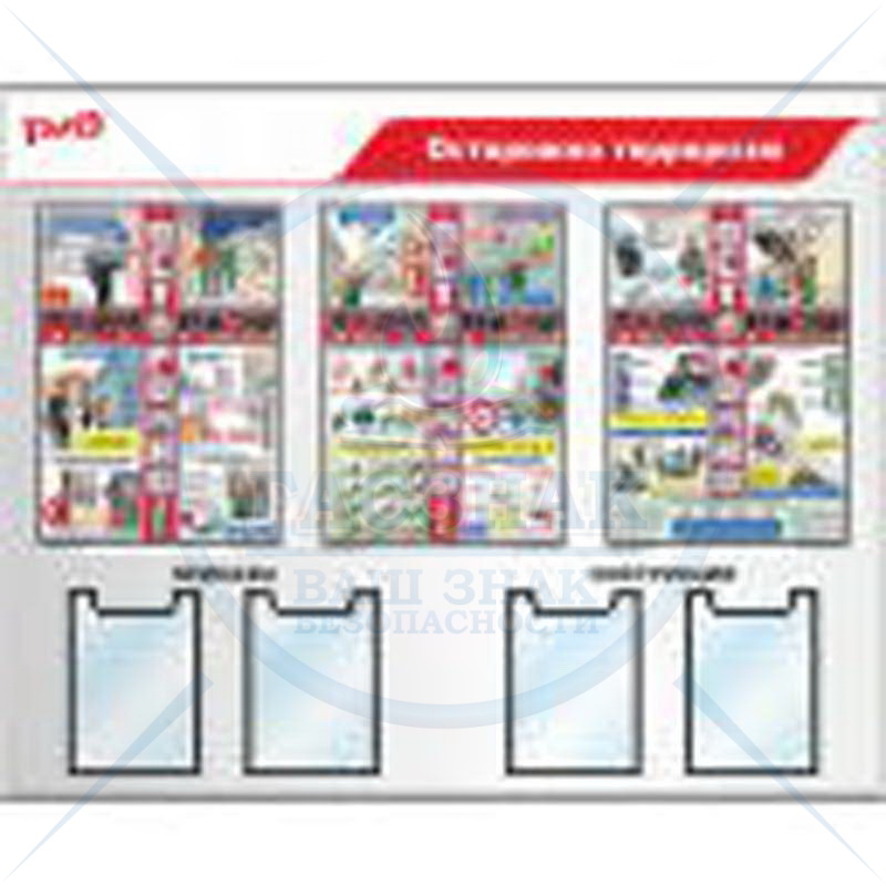 Стенды по охране труда для ОАО РЖД Транспортная безопасность, 2 плоских кармана А4,перекидная система А4 на 4 рамки (Пластик ПВХ 4 мм, алюминиевый профиль; 900х600)