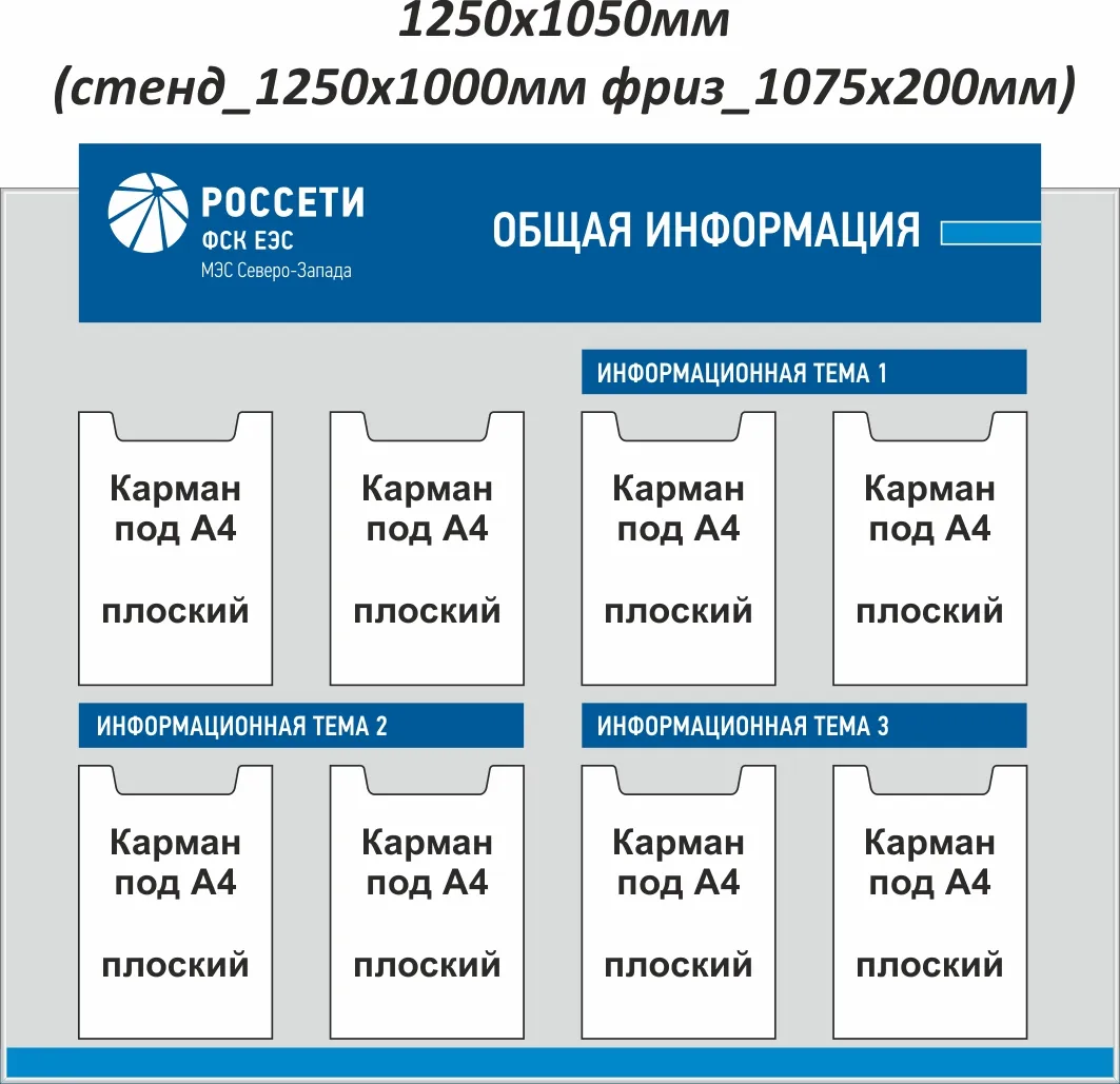 Стенд 1250x1050, Металлокомпозит 3 мм, ал. профиль, накладной фриз 1075х200мм
