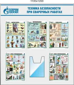 Стенд Организация рабочего места газосварщика, 4 плаката осуэло А3 (800х1200; Пластик ПВХ 4 мм; Алюминиевый профиль)