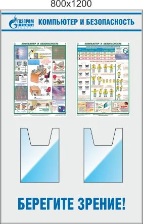 Стенд Компьютер и безопасность, 2 плаката А3, 2 объемных кармана А4 (800х1200; Пластик ПВХ 4 мм; Алюминиевый профиль)