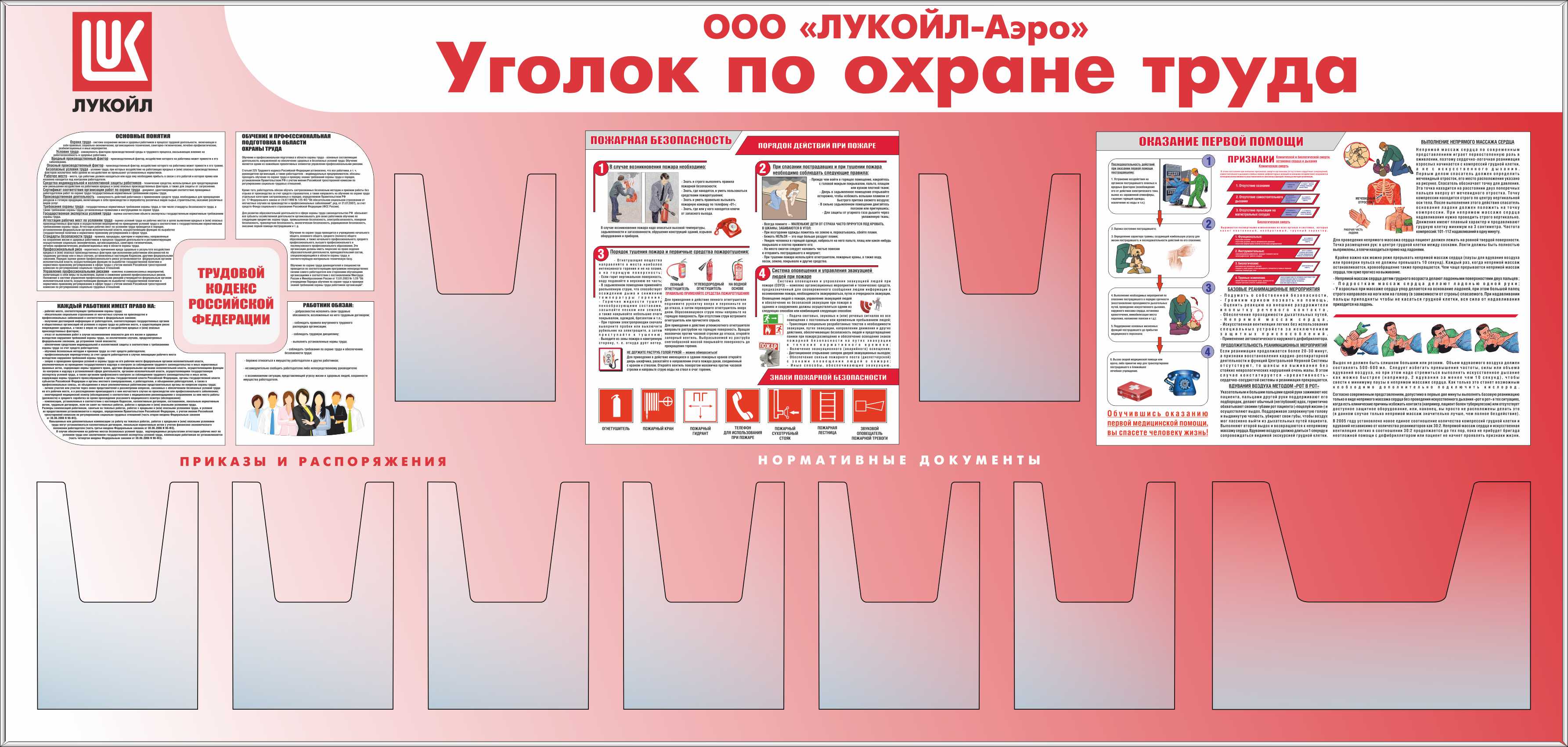 Стенд Уголок ОТ, 4 плоских кармана А4, 2 объемных кармана А4, 1 перекидная система А4 на 10 листов (1100х1200; Пластик ПВХ 4 мм; Алюминиевый профиль)