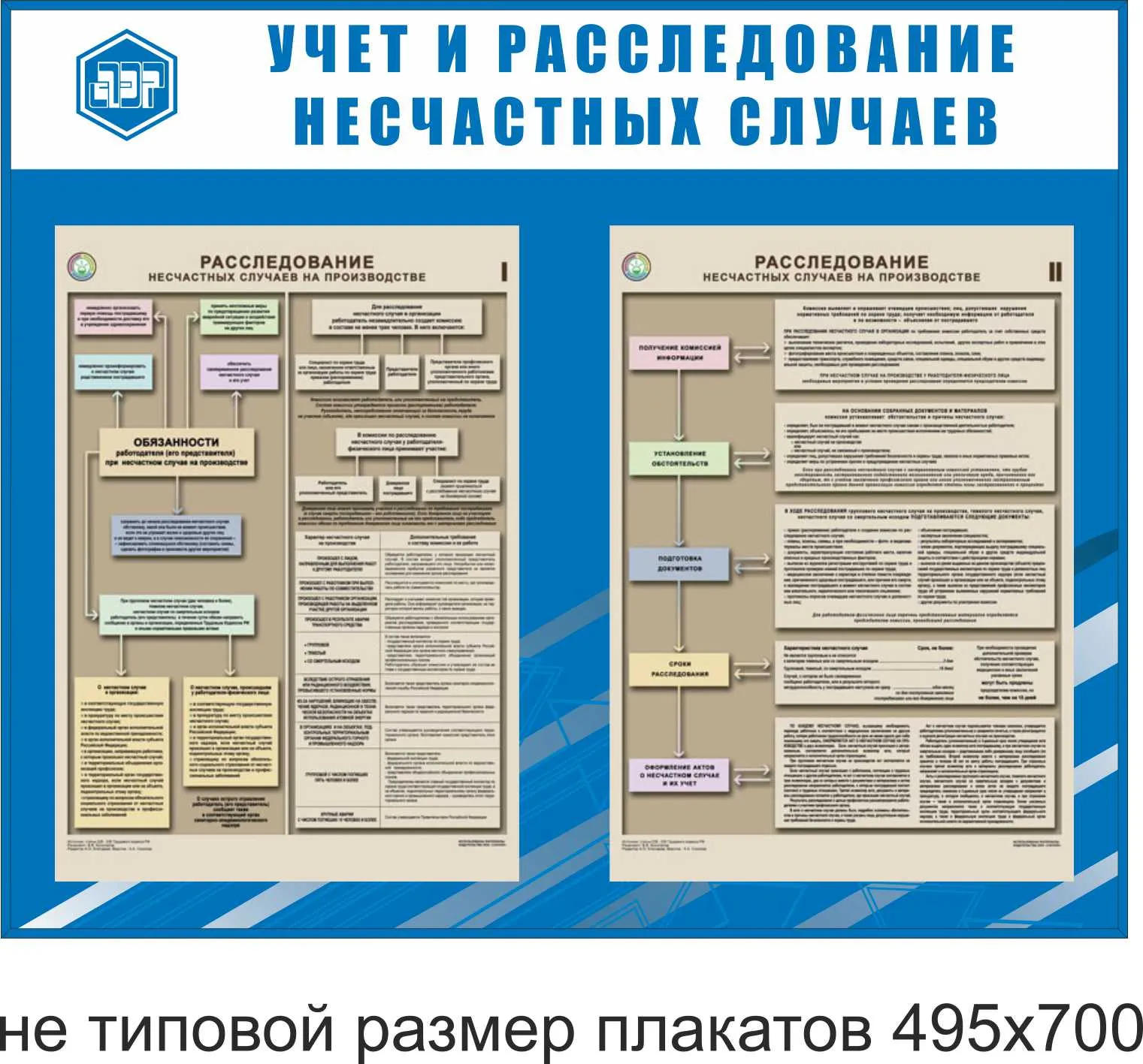 Стенд Охрана труда (учет и расследование несчастных случаев), ламинация защитной пленкой 25мк, Логотип (1200х1000; Пластик ПВХ 4 мм, пластиковый профиль; Пластиковый) (полноцветная широкоформатная печать), Расследование несчастного случая на производстве, 1 шт., ПЛВ16-2 (Ламинированная бумага; А2)-1шт