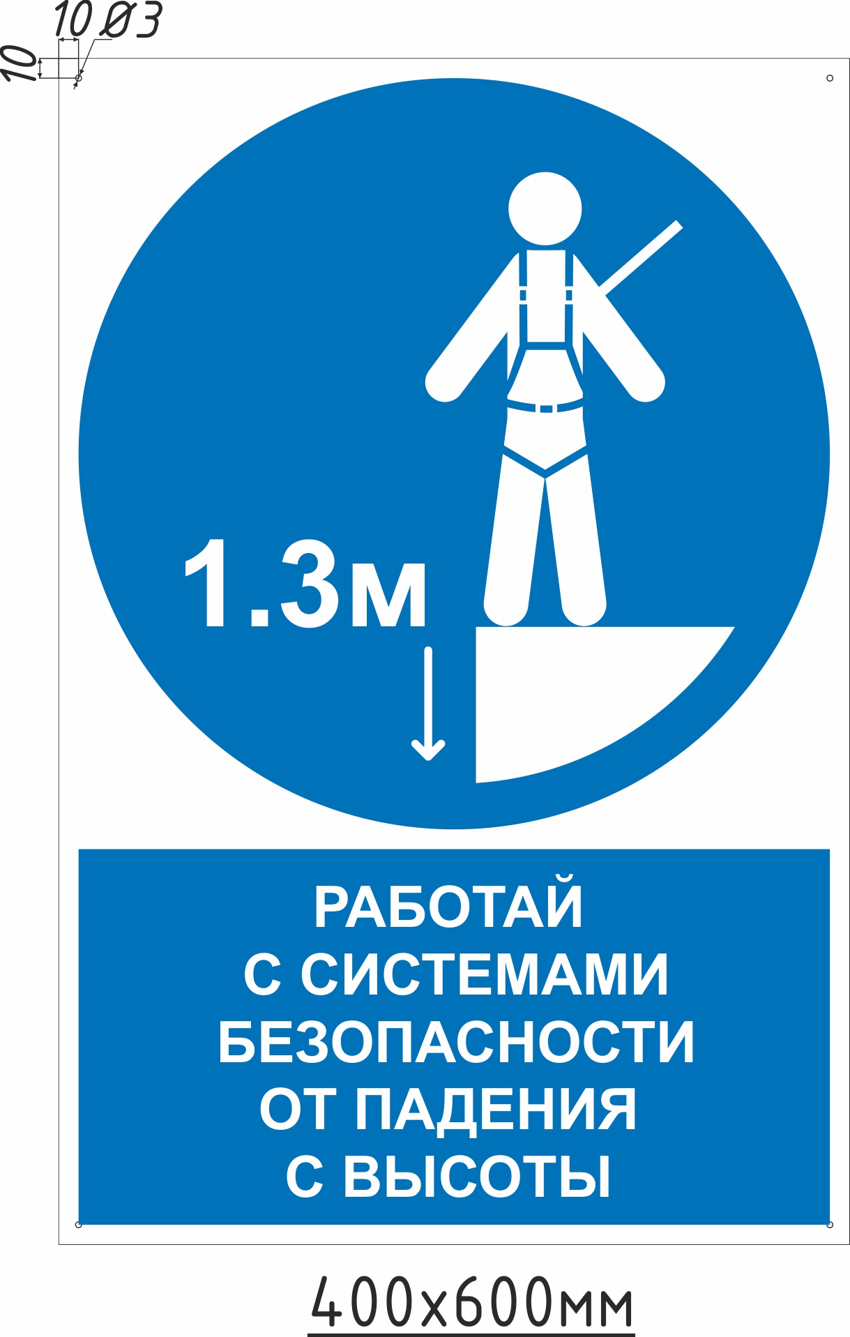 Знак комбинированный "Работай с системами безопасности от падения с высоты" 1,3 м