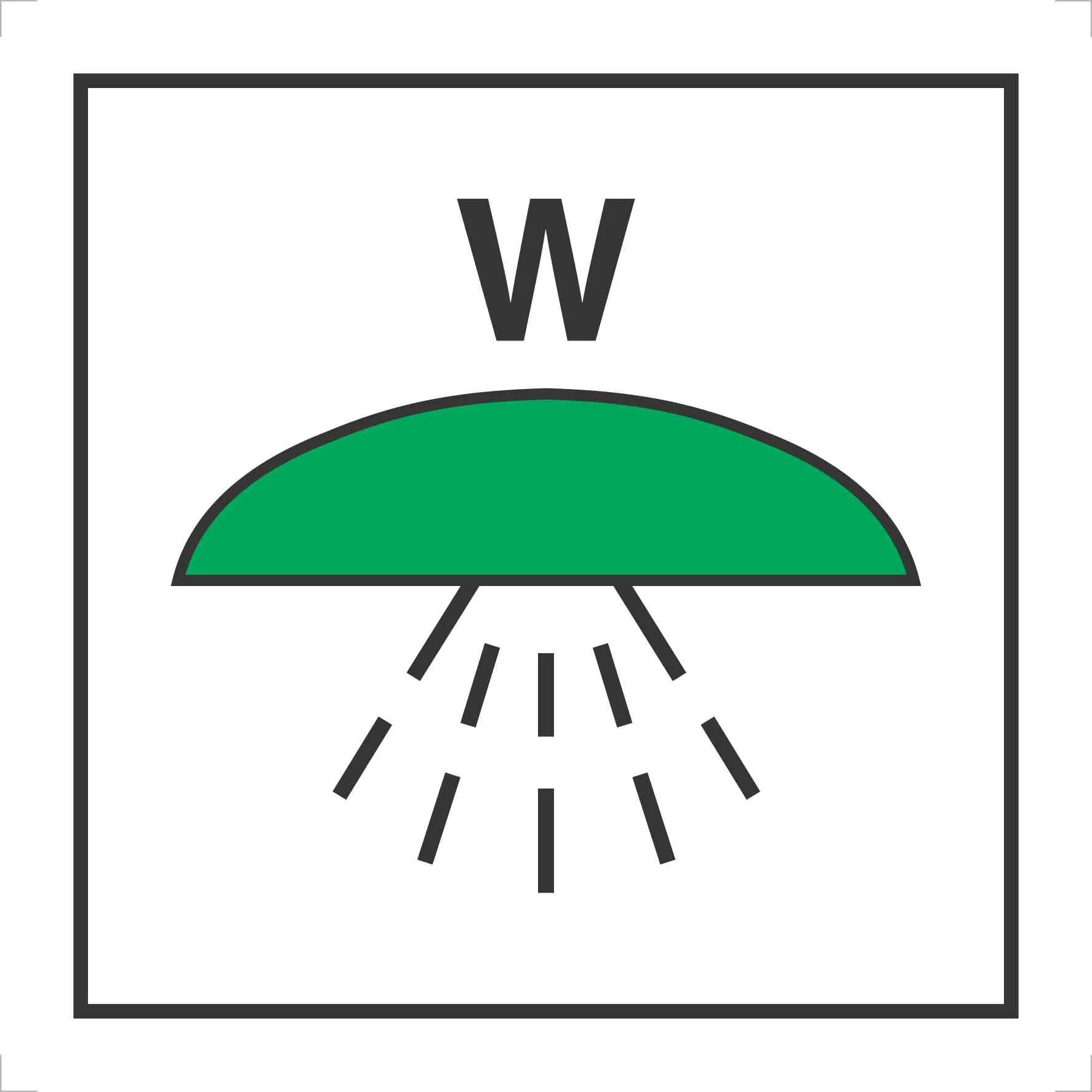 Знак ИМО Помещение или группа помещений. защищенных системой водяного пожаротушения (Space or group of spaces protected by fire extinguishing water system)