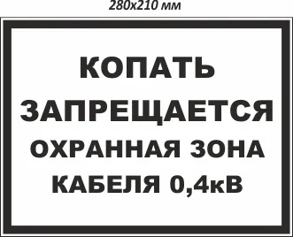На нашем сайте можно купить Копать запрещается. Охранная зона кабеля 0,4кВ по доступной цене. Предусмотрена доставка заказов в Салавате.